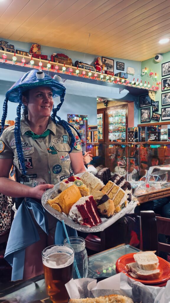 Para fechar o dia, o The Bubble Room é parada obrigatória. Um restaurante divertido, decorado como se fosse Natal o ano inteiro, com luzes coloridas, brinquedos vintage e atendentes animados.