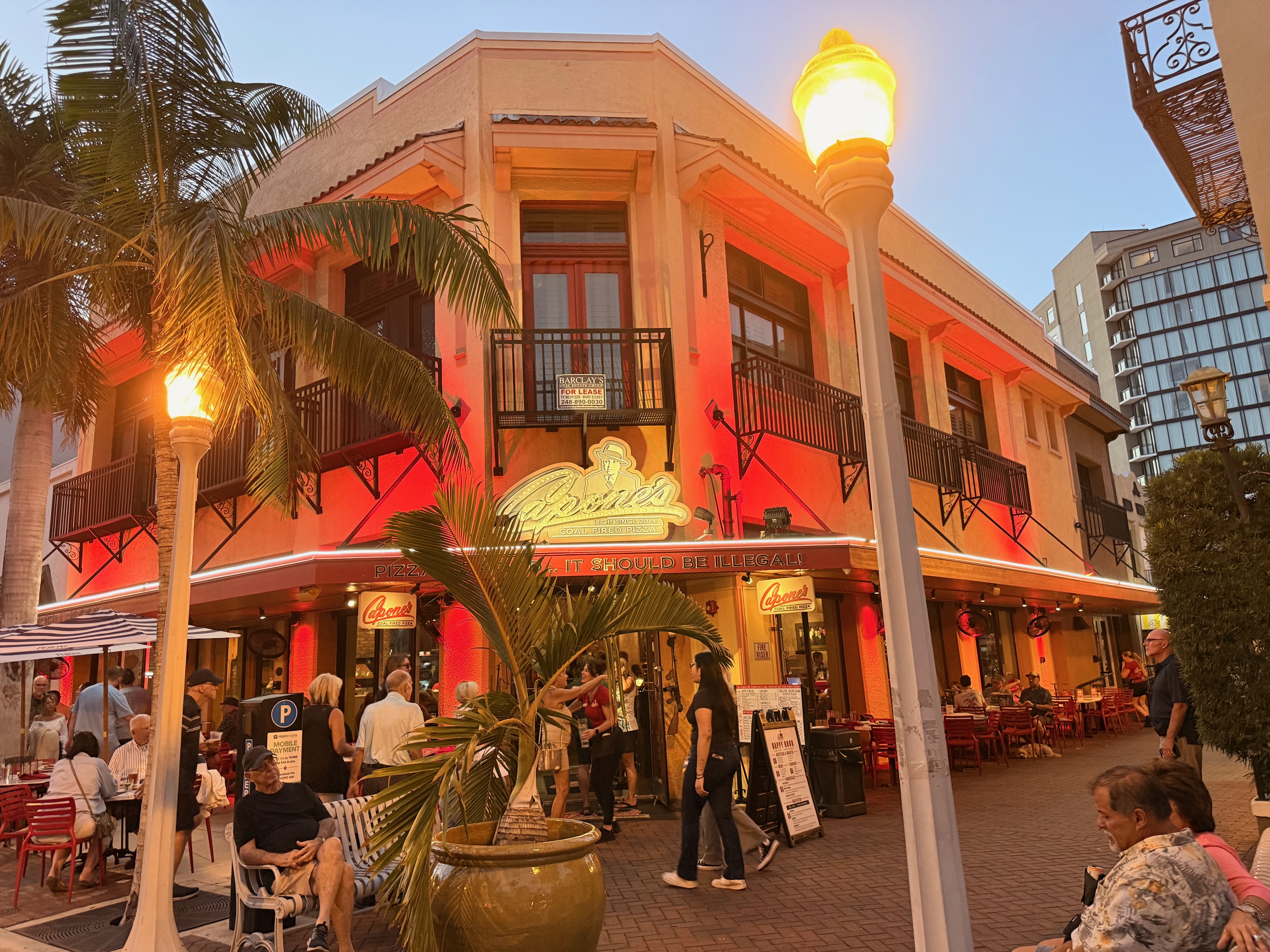 O downtown de Fort Myers é gostoso para caminhar sem pressa. Com ruas históricas, construções charmosas e palmeiras altas que completam o belo cenário, o centro reúne galerias, cafés, livrarias, ótimos restaurantes e bares com música ao vivo.