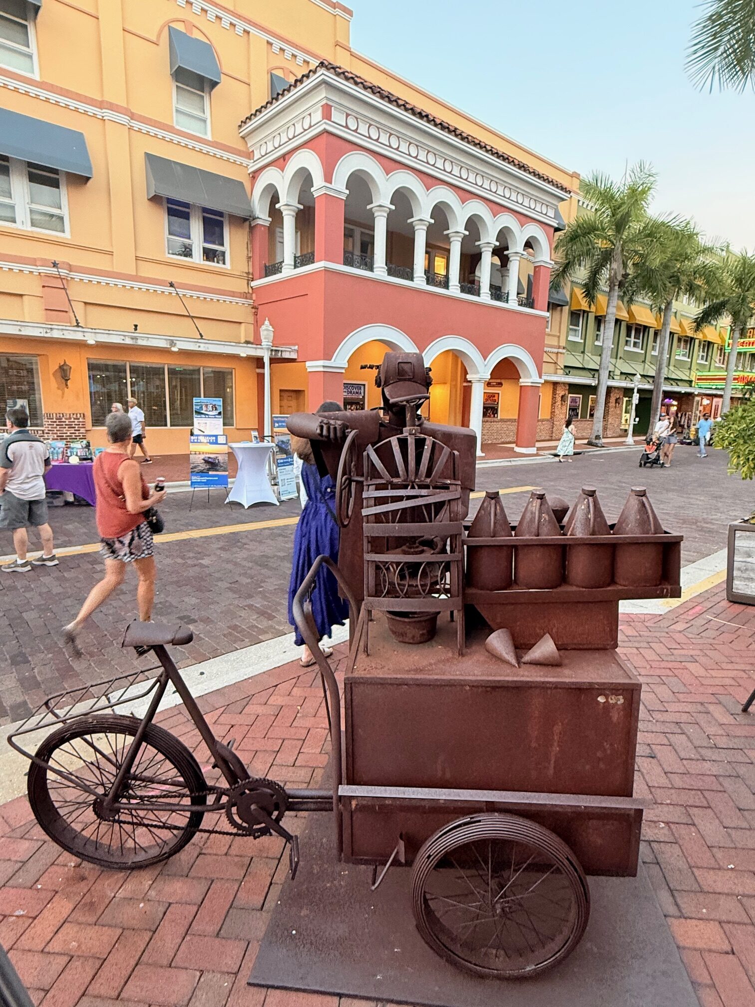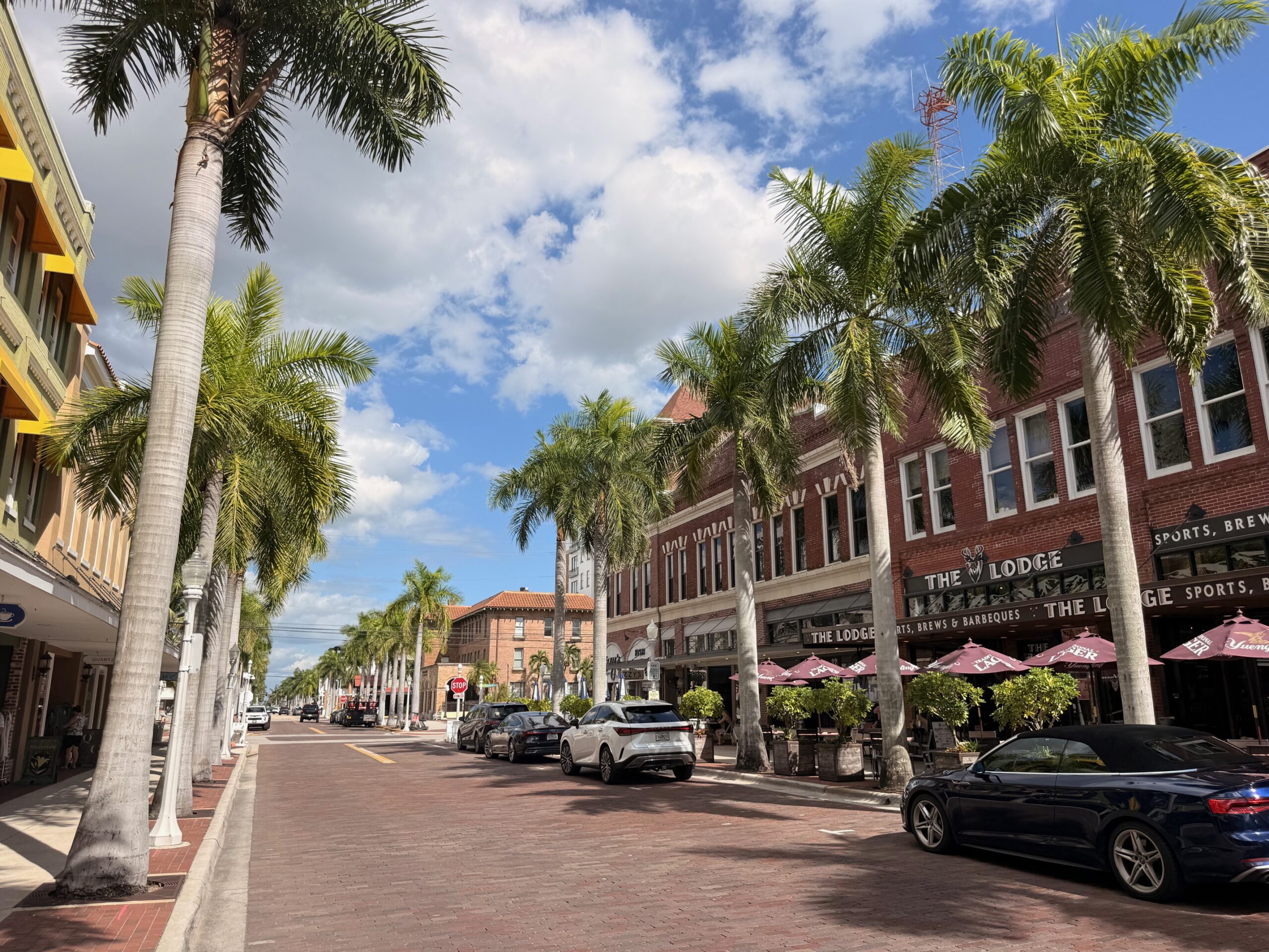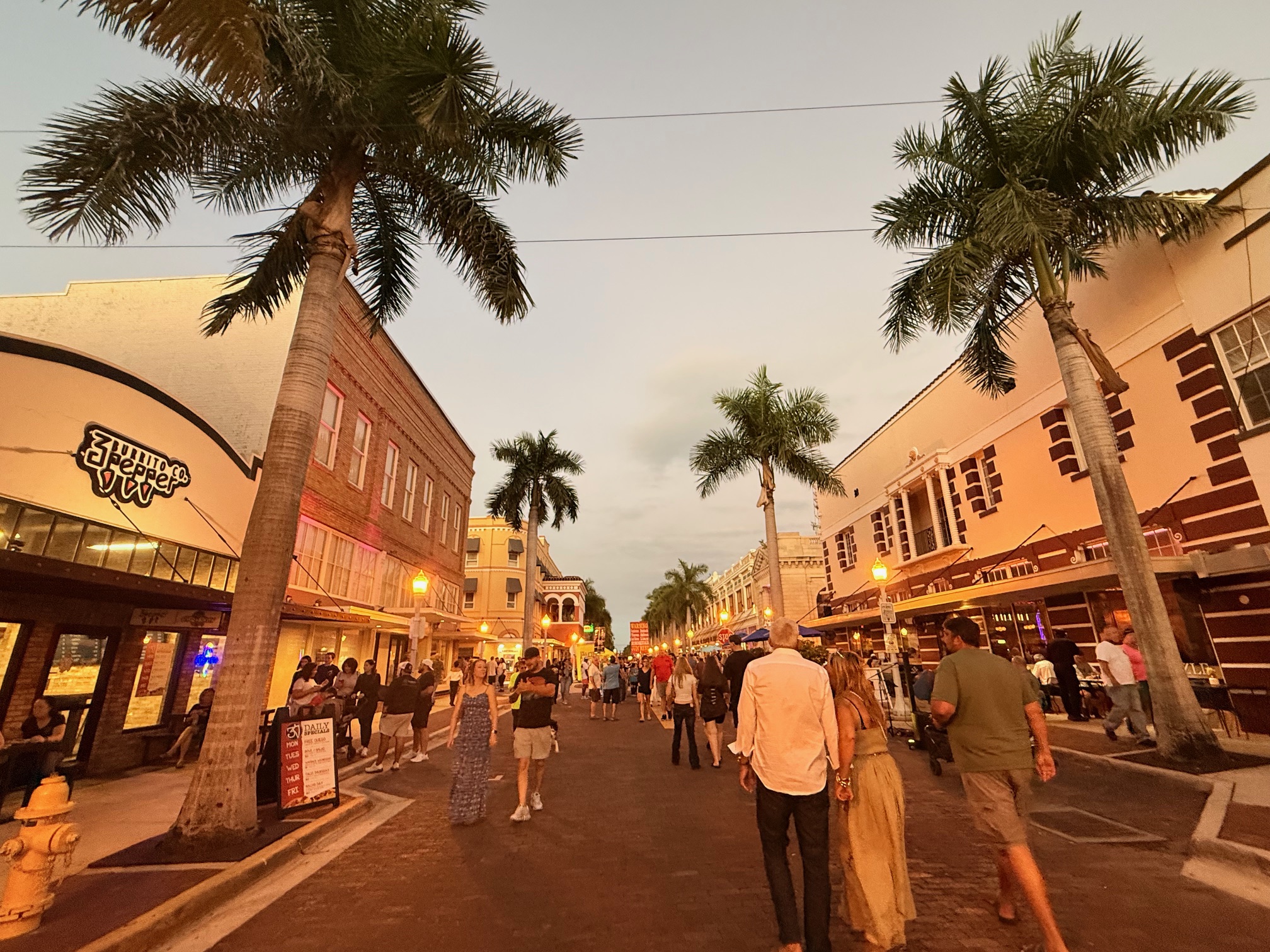O downtown de Fort Myers é gostoso para caminhar sem pressa. Com ruas históricas, construções charmosas e palmeiras altas que completam o belo cenário, o centro reúne galerias, cafés, livrarias, ótimos restaurantes e bares com música ao vivo.
