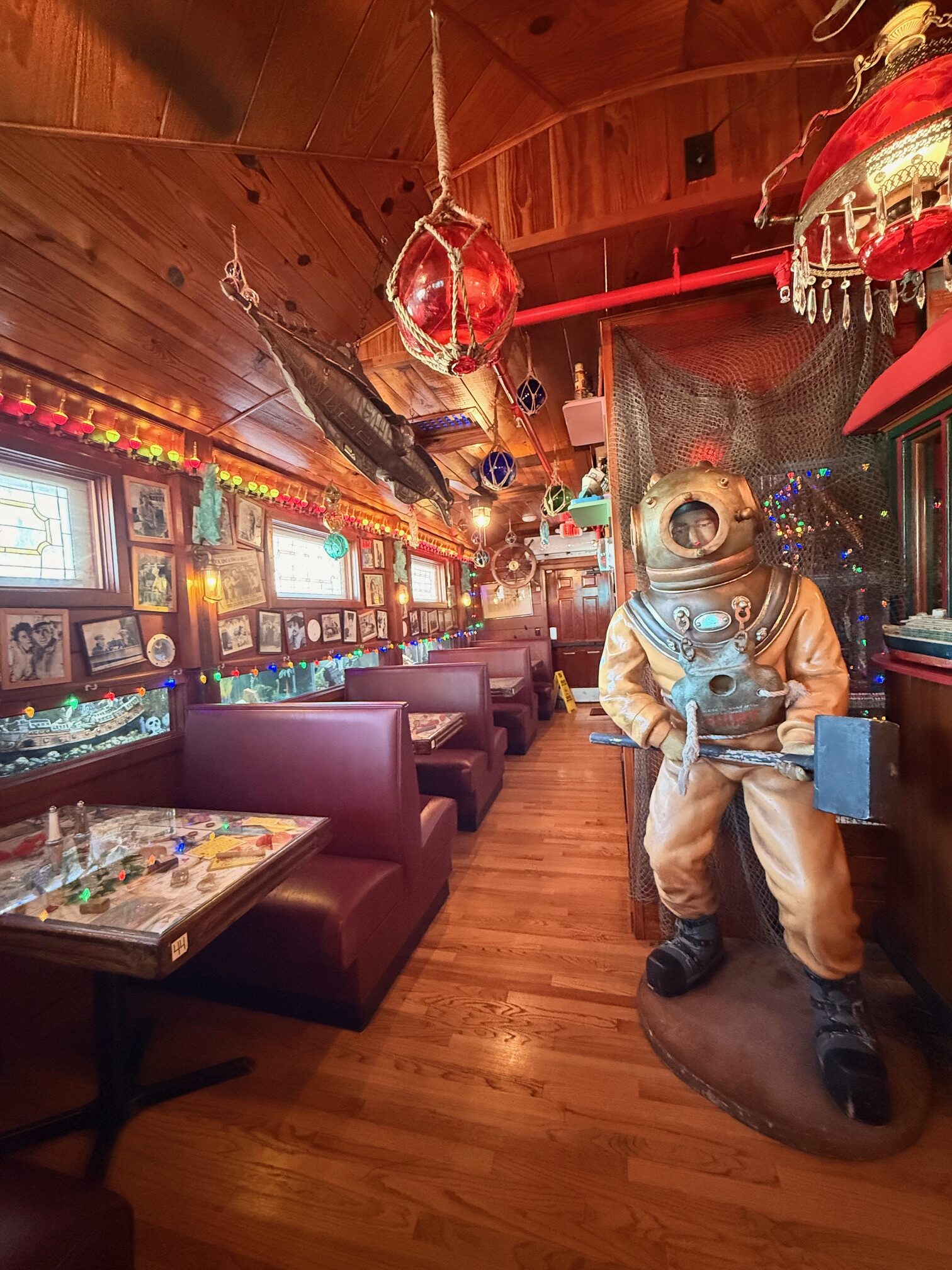 Para fechar o dia, o The Bubble Room é parada obrigatória. Um restaurante divertido, decorado como se fosse Natal o ano inteiro, com luzes coloridas, brinquedos vintage e atendentes animados.